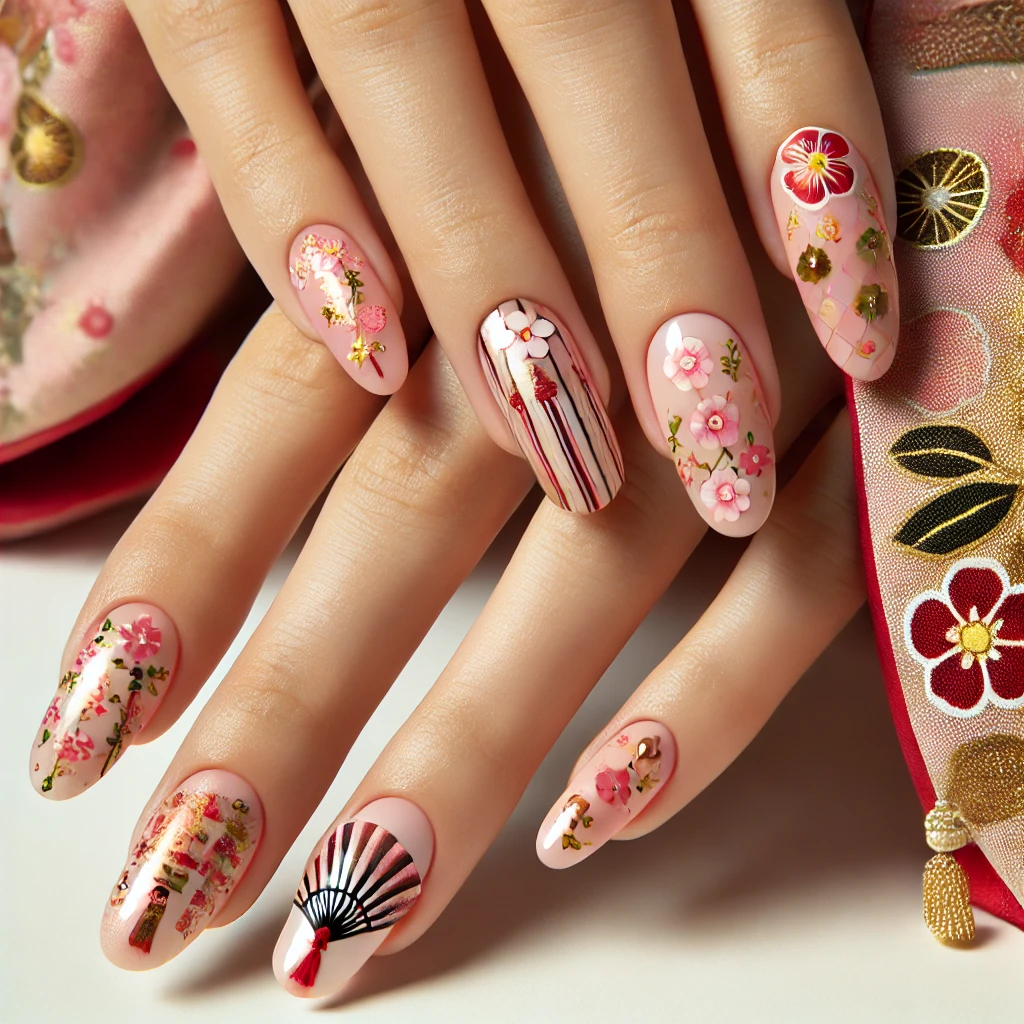 普段はポップなネイルが多いけど、たまにはこういう和柄の落ち着いた雰囲気も良いよね〜🎎✨ これなら指先から節分らしさを感じつつ、ちょっと大人っぽいスタイルも楽しめると思うよ❣️