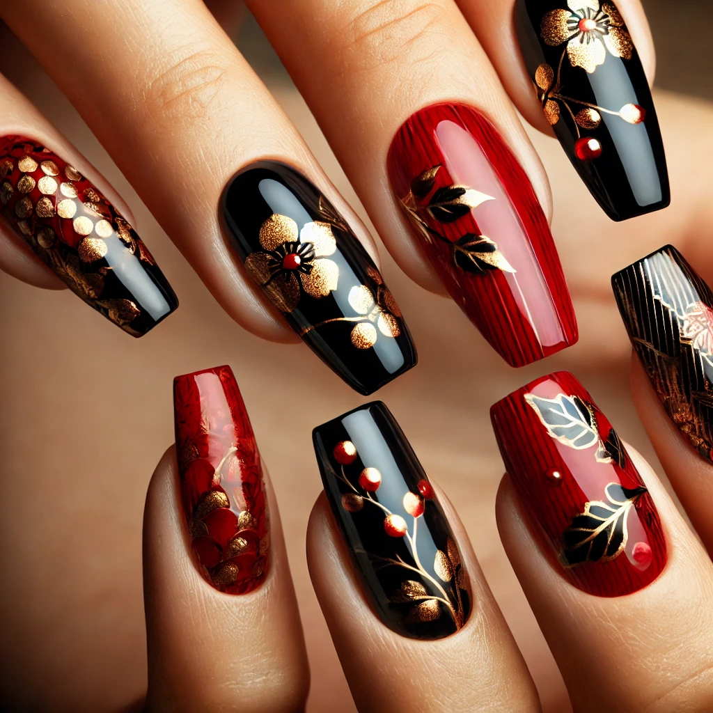 今日は節分のイメージで、いつもとちょっと違う和柄ネイルに挑戦してみたよ〜💅💖