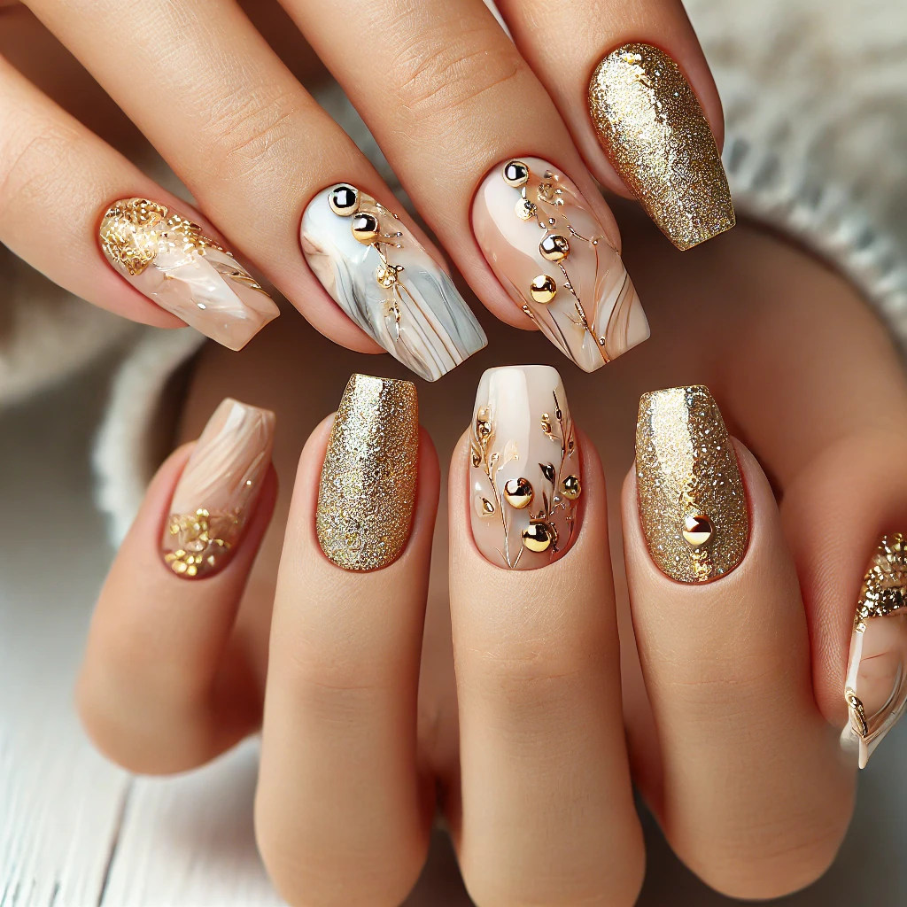 冬のパーティーや特別なイベントで、このネイルを付けて行けば注目の的間違いなしだし、写真映えもバッチリ📸❄️✨ 指先がまるでアクセサリーみたいに見えるから、どんなコーデも一気に華やかになるよ〜💃🎉